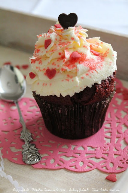 Pour cette Saint-Valentin, je voulais aussi un dessert simple mais qui fasse son effet :LOVE RED VELVET CUPCAKES.