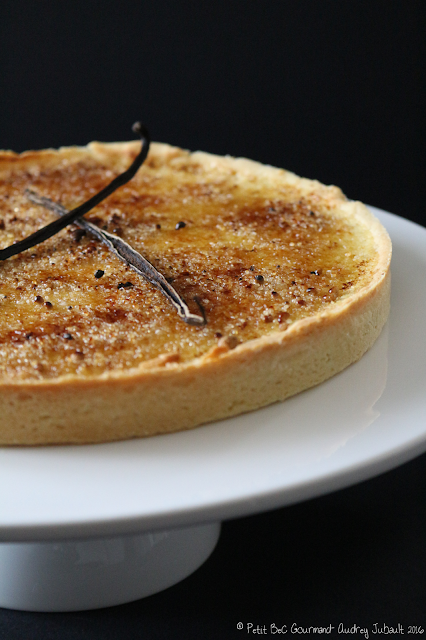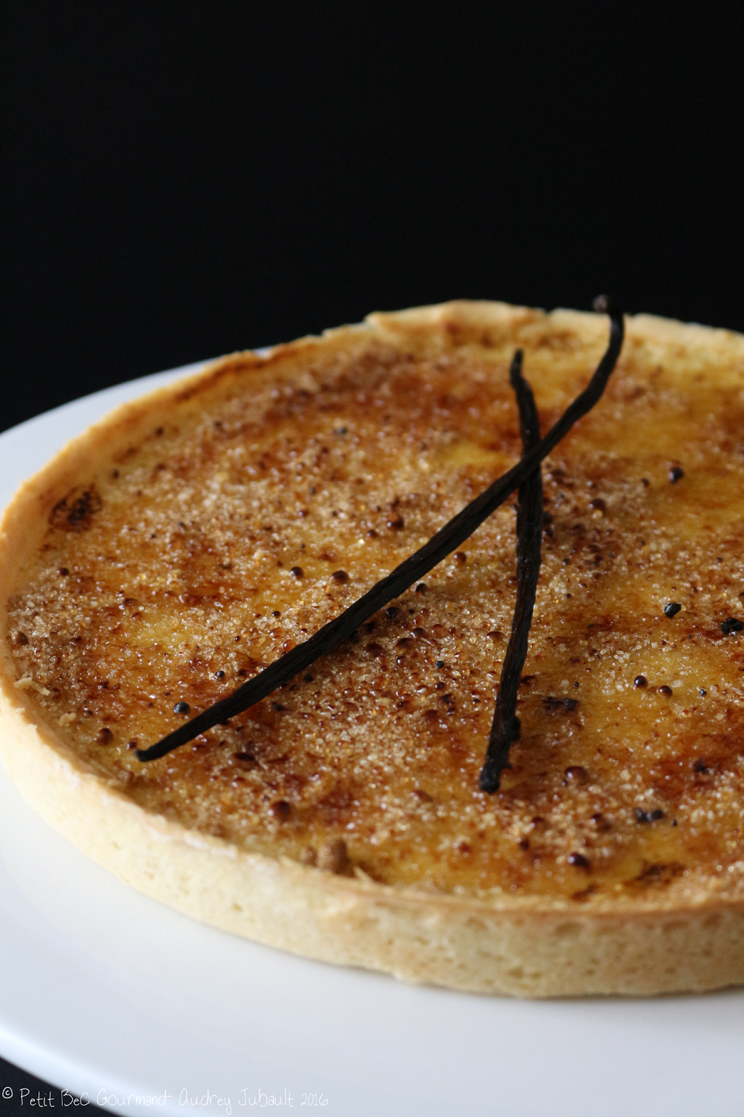 Une délicieuse et fondante Tarte à la crème brûlée .