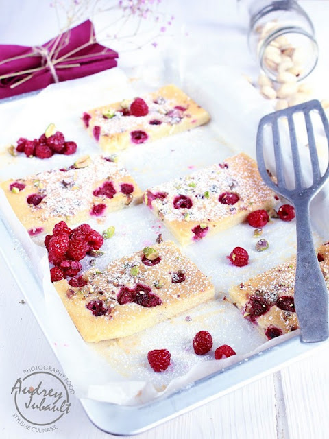 Un Goûter gourmand et fruité avec ce Grand financier aux framboises et pistaches.