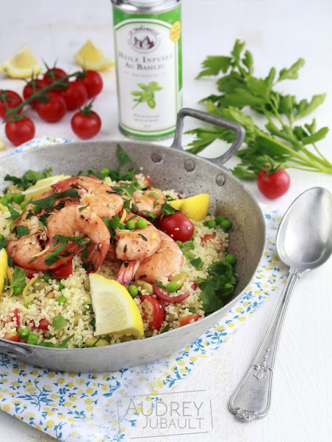 | Couscous léger aux crevettes-basilic |