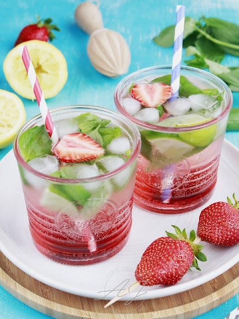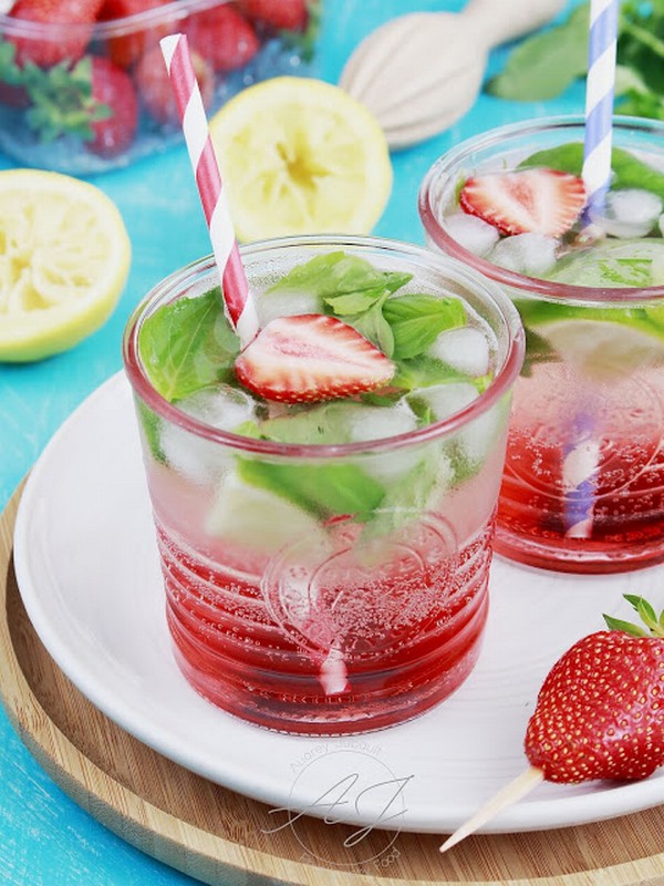 Cocktail citron-fraises infusé au basilic Auteur: Audrey Jubault Temps de préparation: Temps de repos: Portions: 2 pers