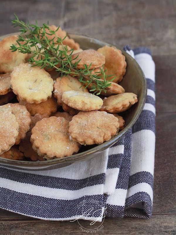 Ceux-ci sont faits avec un bon beurre AOP Poitou Charentes, du thym bien frais du jardin et une farine de blé complète.