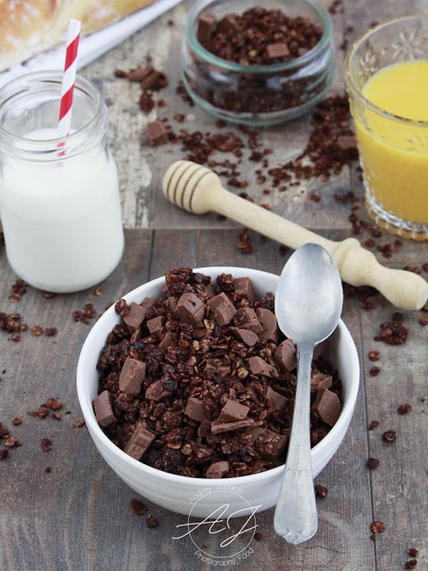 Prendre le temps pour profiter d'un bon petit déjeuner avec ce super Granola au cacao et noix de coco, c'est un pur régal.