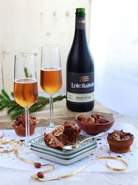 J'ai accompagné ces petits moelleux avec le Cidre Dégustation de Loïc Raison (présent dans la Degusta Box du mois d'Avril), un cidre dont la bouteille est très élégante (ce qui m'a séduit avant d'y goûter), une mousse généreuse, une belle couleur ambrée et une plus forte note d'alcool (6%) comparé aux autres cidres que nous avons pu déguster.