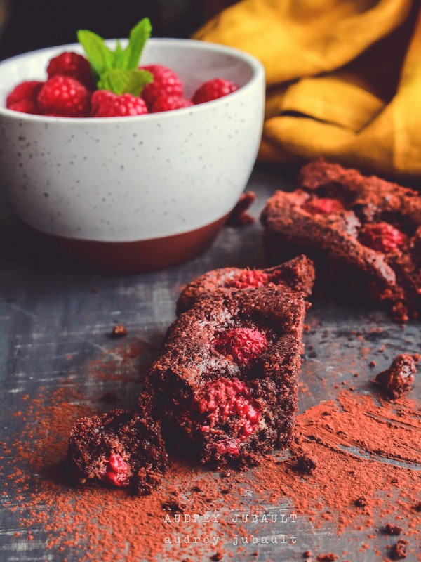 - Ajoutez les framboises sur le brownie puis enfournez pour 25/30 min de cuisson.