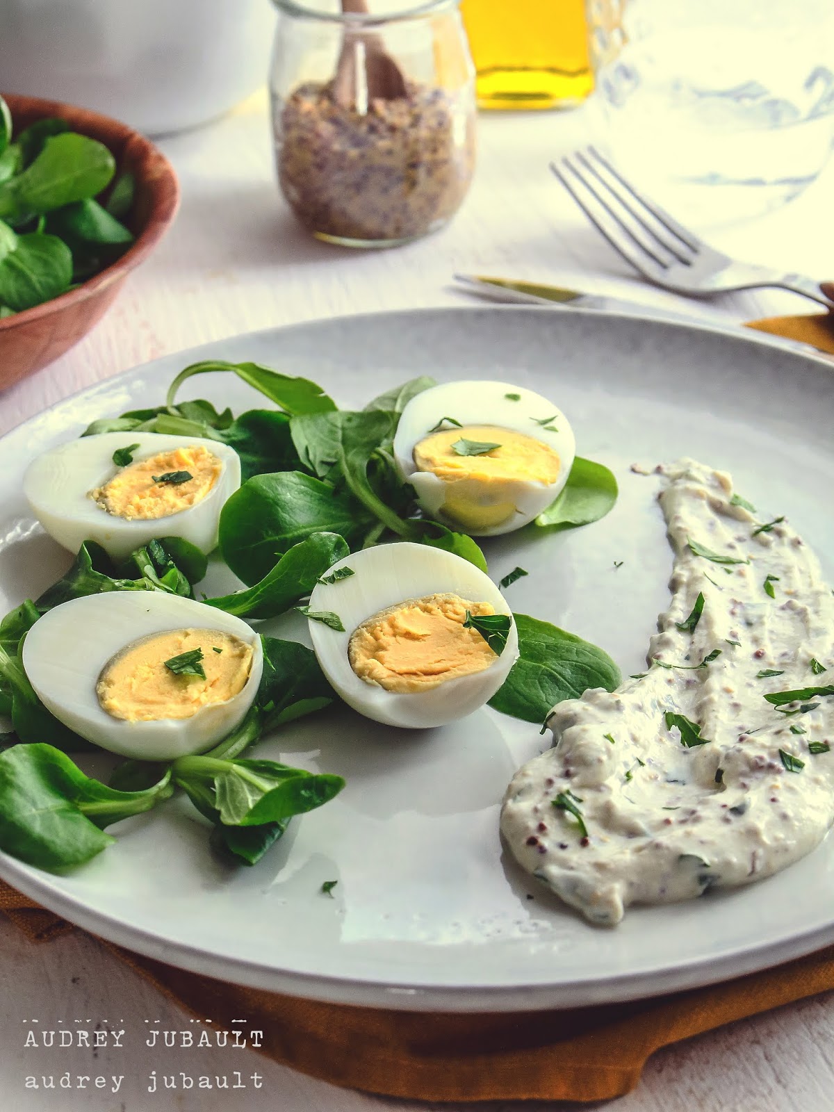 | Oeufs durs sauce moutarde aux petits-suisses |