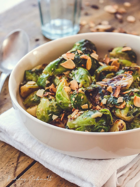 j'aime beaucoup cette idée d'associer les mandes aux choux de bruxelles! les deux saveurs doivent très bien s'accommoder