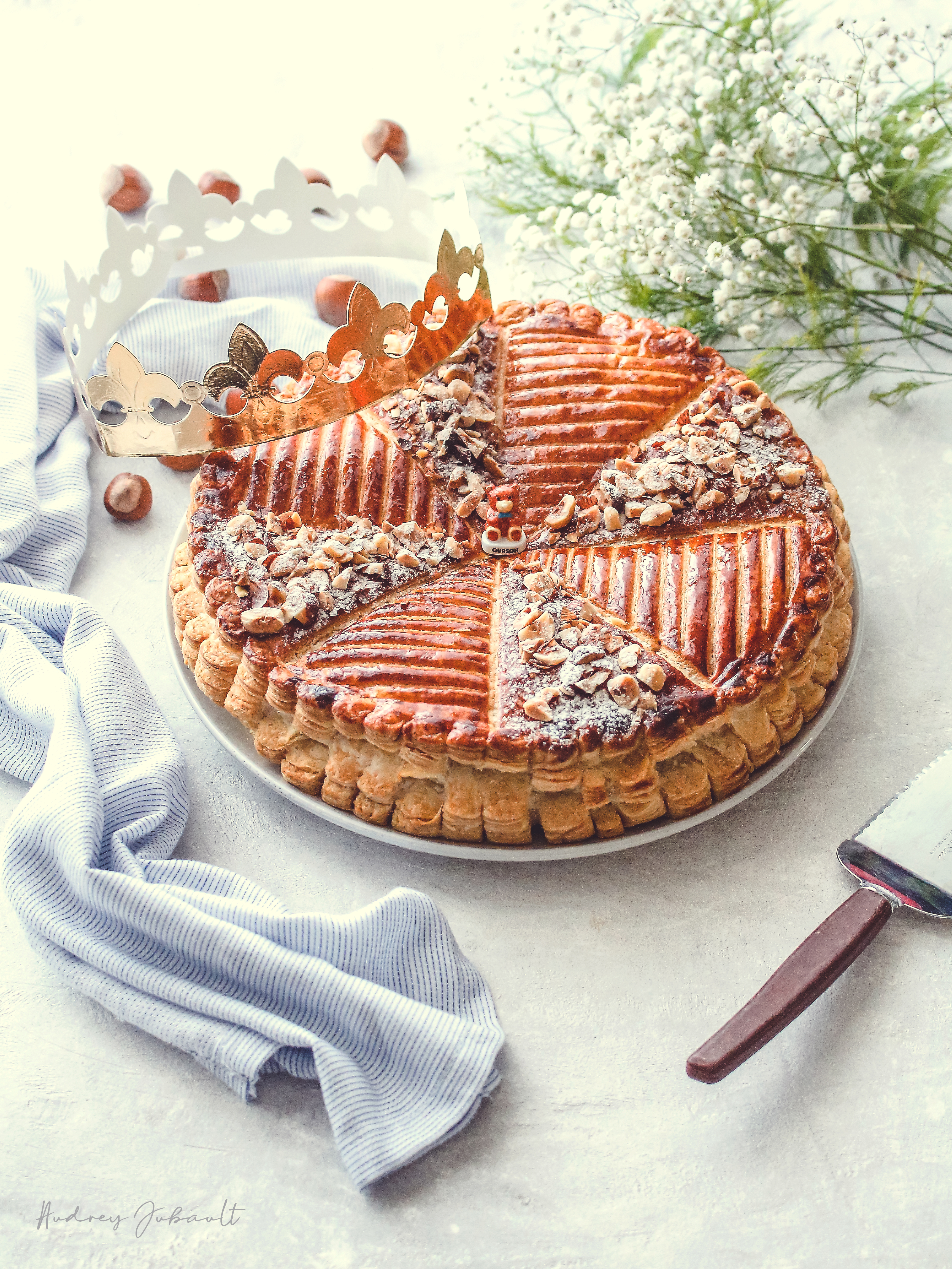 Marquer le coup et promettre de faire chavirer les papilles, c'est mon objectif premier avec cette Galette des Rois "infiniment noisettes", une pâte feuilletée inversée ultra croustillante, une crème de noisettes associée à une crème pâtissière pour obtenir une succulente frangipane avec un praliné 100% noisettes.