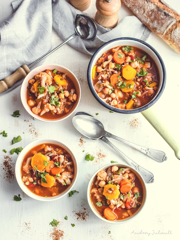 C'est pourquoi ce petit ragoût est vraiment idéal, il est épicé au RAS EL HANOUT qui est un mélange d'épices pour couscous et relève bien le tout.Le ragoût n'est pas seulement à base de viande, il est aussi sain sans, et ici les légumes de saison sont à l'honneur comme le chou-fleur, les carottes, les pois chiches, les lentilles, mis à part les tomates qui sont en conserve.