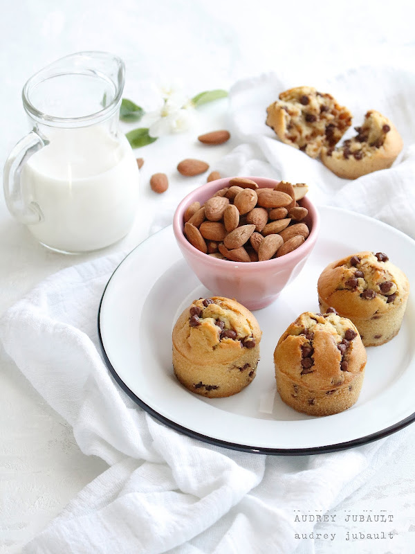 Un petit goûter tout doux au lait d'amandes et aux pépites de chocolat au lait. Moelleux à souhait pour le plaisir de tous.
