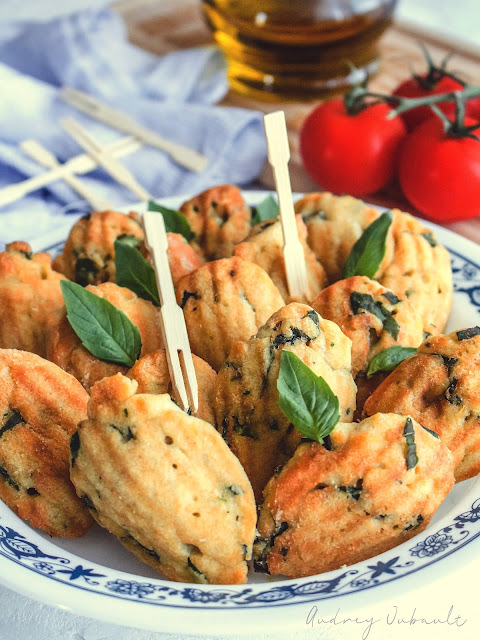Découvrez aussi 3 autres recettes de madeleines salées: Madeleines au chorizo et poivrons - Madeleines au râpé de jambon et Vache qui rit - Madeleines au parmesan, tomates et basilic