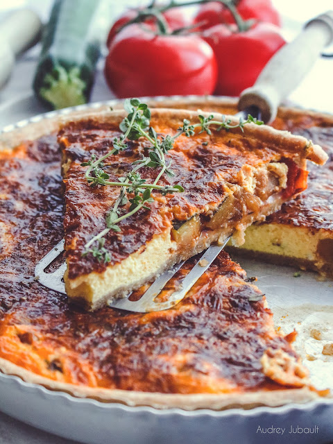 - Abaissez votre pâte brisée au thym dans un moule à tarte.