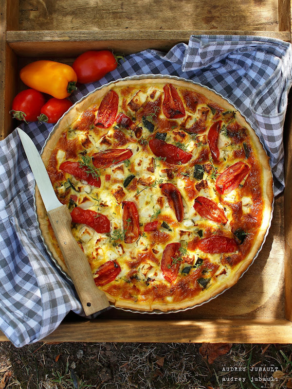 D'ailleurs une quiche s'imposait, une bonne quiche à la Provençale, riche en légumes: courgette-tomate-poivron, riche en goût et super colorée avec pour fromage de la feta.