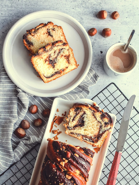 Un peu de douceur pour commencer l'année 2021 avec cette succulente brioche " BABKA / KRANTZ " pour le petit déjeuner (ou même le goûter) tout en gourmandise. Elle est fourrée de pâte à tartiner Nocciolata (sans huile de palme), badigeonnée d'un sirop au jus d'orange et parsemée de noisettes concassées.