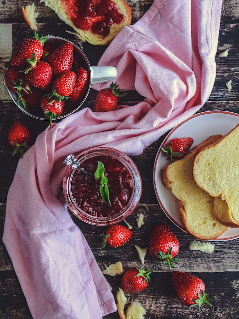 Bien que j'adore les fraises, je n'aime pas trop en confiture ni en compote, je les aime en gros fruits tout simplement, allez comprendre pourquoi, c'est inexplicable ! Mais pourquoi faire une confiture si tu n'aimes pas trop ça, tout simplement pour faire plaisir aux gourmands de la maison qui adorent ça sur une tranche de brioche, sur une crêpe ou dans un roulé.