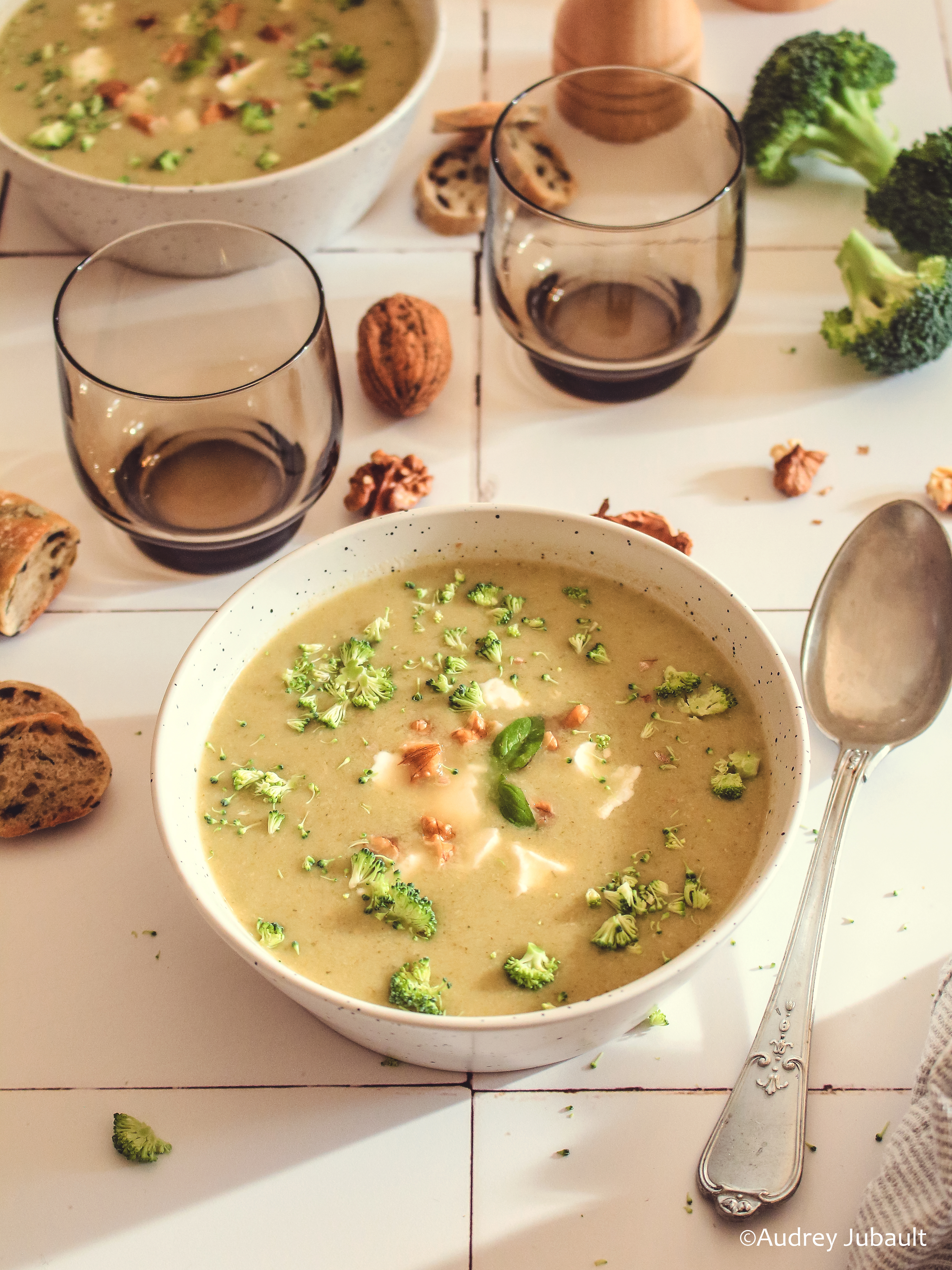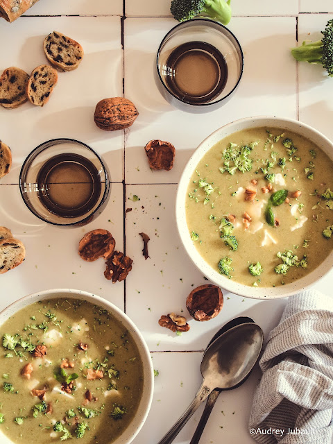 Même si on adore la bonne vieille soupe de mamie qui reste plus ou moins bien un bon souvenir d'enfance, on lui donne désormais plus d'attention en lui ajoutant du fromage, des chips de parmesan ou de bacon, du crumble, des graines croustillantes, des fruits secs (type noix, amandes, noisettes, noix de cajou, etc...), de morceaux de légumes crus émincés finement. On l'accompagne aussi de crackers sains aux graines, de petites flûtes feuilletées (jambon-fromage, chorizo-fromage, saumon-fromage aux fines herbes), de tartines gourmandes.
