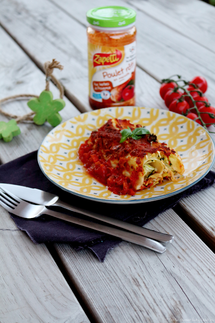 Quand la simplicité s'invite un soir d'été.... et bien cela donne des Cannellonis aux courgettes râpées, nappées d'une Sauce Poulet rôti de Zapetti (reçue dans la Degustabox de Juillet).