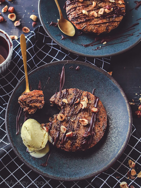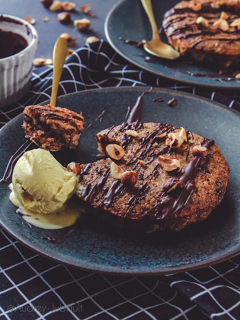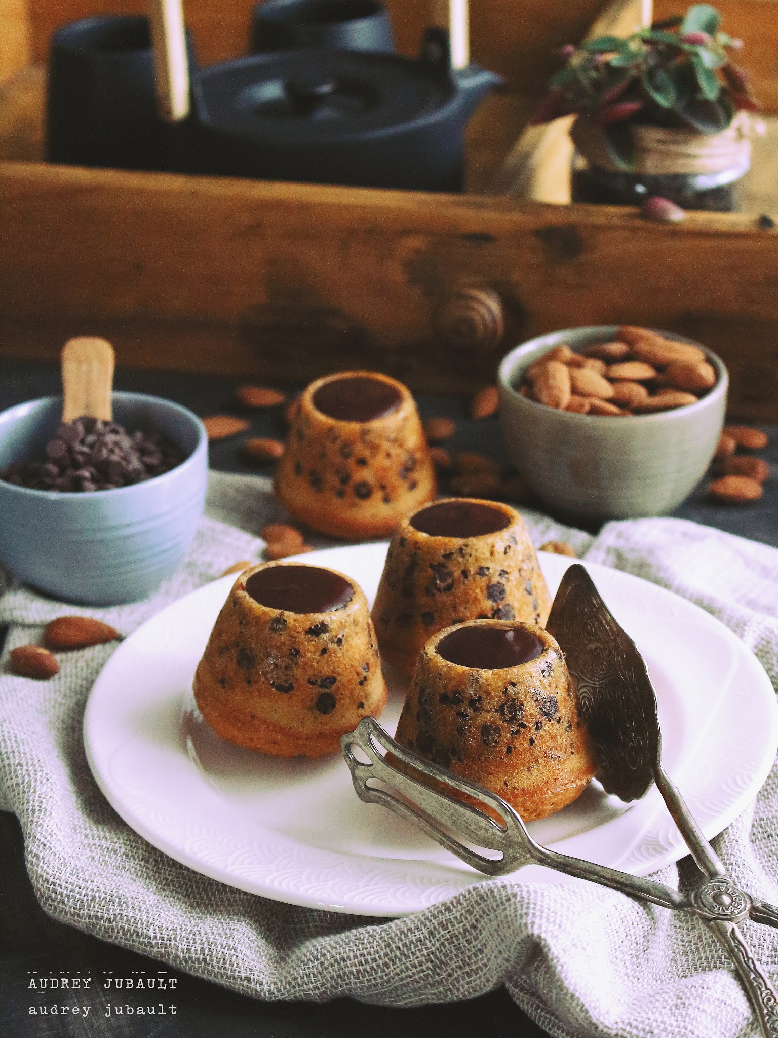 Ces petits gâteaux à base de blancs d'oeufs et de poudre d'amandes ou de noisettes sont très appréciés par les gourmands car on a de nombreuses variantes: au chocolat, aux pépites de chocolat, aux fruits, au thé matcha, mais aussi en version salé pour l'apéro.Le dimanche, on aime bien se faire plaisir avec une petite douceur pour le goûter et ces financiers sont tombés à pic, ils sont aux noisettes et pépites de chocolat, j'ai nappé un peu de chocolat fondu sur le dessus, parsemé quelques noisettes grillées et accompagné d'une boule de glace à la vanille.