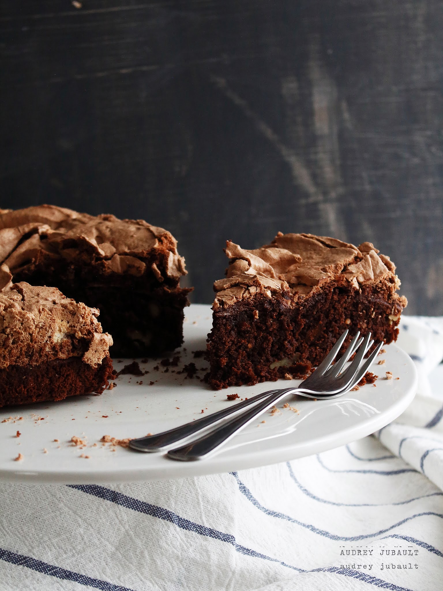 En ce doux weekend de vacances, on a envie de fêter ça tout en gourmandises avec un Brownie meringué tout choco. Oui vous avez bien lu..... un brownie avec une couche de meringue sur le dessus.