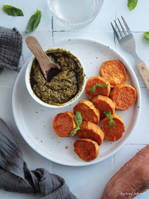 Patates douces rôties et sauce pesto