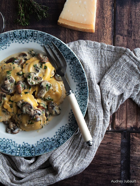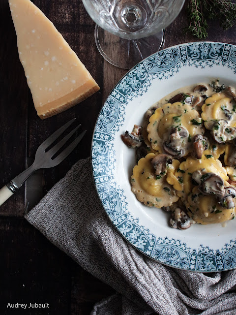 C'est le genre de plat simple que l'on aime pour les soirs où on a pas trop le temps ou l'envie de cuisiner et ces Girasoli aux cèpes ont été parfaits avec une sauce crémeuse au parmesan et champignons de Paris.