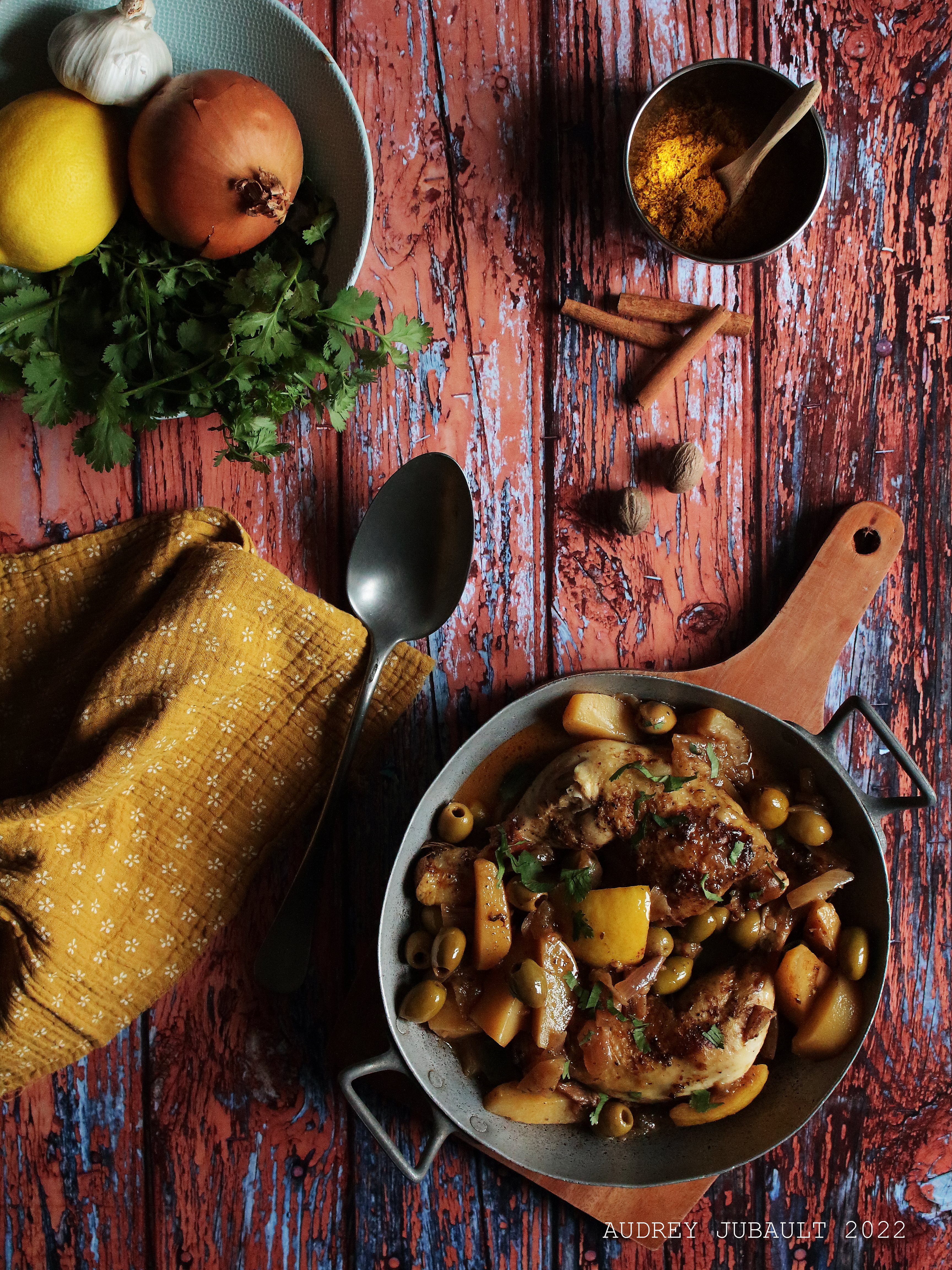 TAJINE DE POULET, POMMES DE TERRE, OLIVES ET CITRON