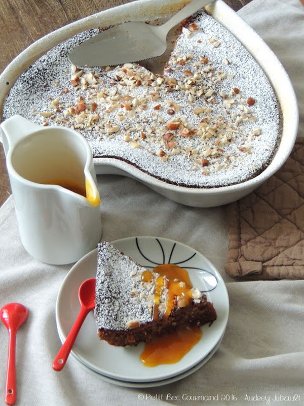 J'adore ce gâteau hyper moelleux, simple, rapide et qui fait toujours fureur à la maison. Pour cette version, ça sera chocolat et noisettes en pâte, accompagné d'un coulis de Mangue-Passion (si vous n'aimez pas ce coulis, vous pouvez utiliser celui à la framboise ou tout simplement ne pas en mettre, il n'en plus que meilleur ! ).