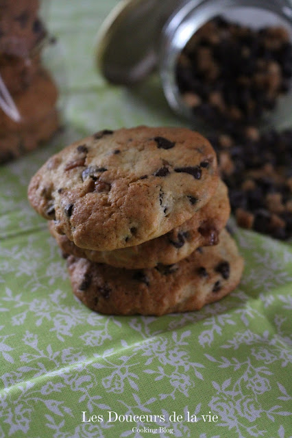 Et donc je voyais bien ces petits carrés de caramel dans des cookies et bien sûr avec des pépites de chocolat.