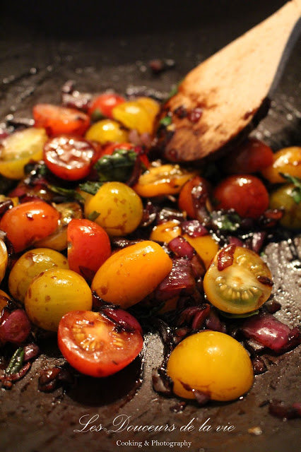 Ajoutez les tomates (lavées et coupées en 2), laissez infuser les tomates pendant 10 bonnes minutes.