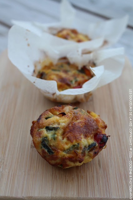 Ce soir là, je n'avais pas trop envie de cuisiner et j'ai donc choisie des frittata avec les 2/3 légumes du frigo et un pot de tomates séchées qu'il me restait.