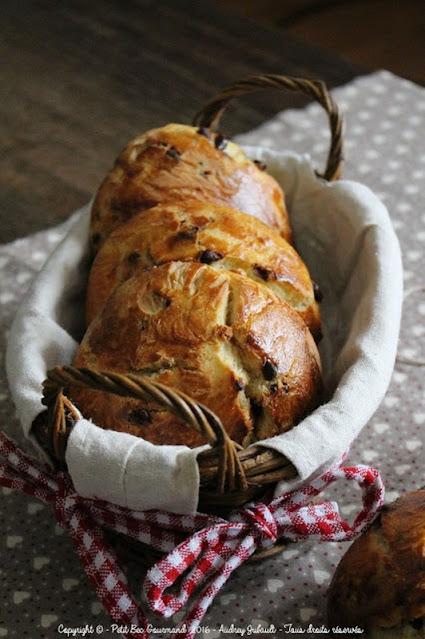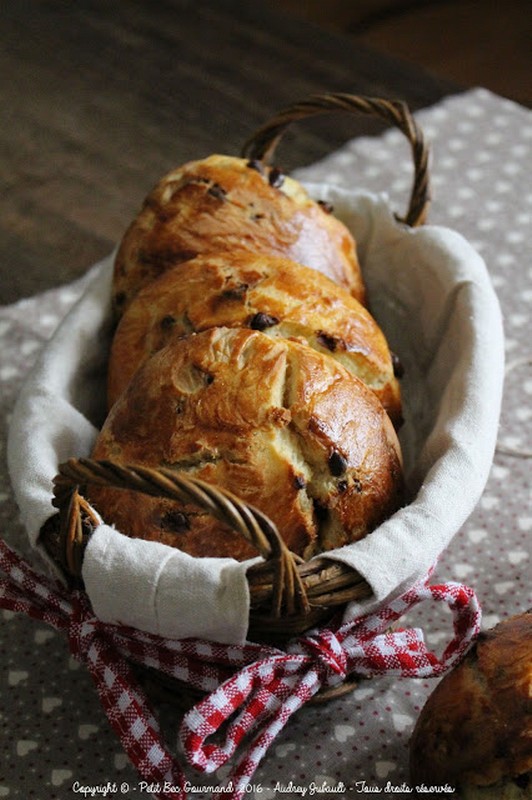 De petites briochettes aux pépites de chocolat pour le petit-déjeuner ou le goûter , moelleuses et bien chocolatées.