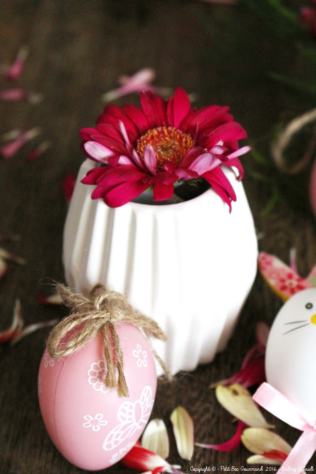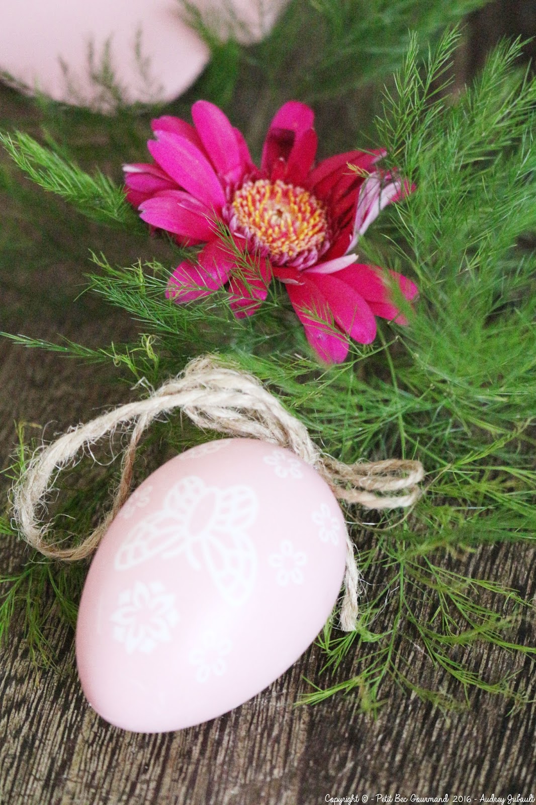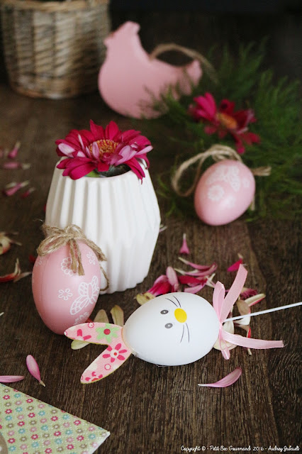 Décorez de petits oeufs pastels, de petits sujets type poussin, poule, ou autres ....