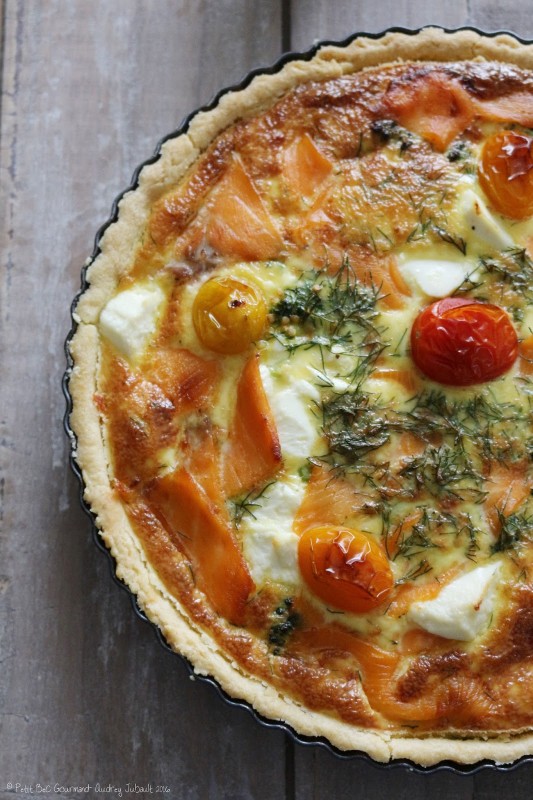 | Tarte à la truite fumée, ricotta et brocolis |