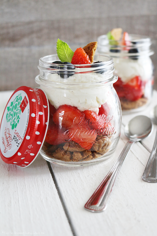 Le croquant des biscuits speculoos, quelques gariguettes, une chantilly à la vanille montée au mascarpone et les douces myrtilles.