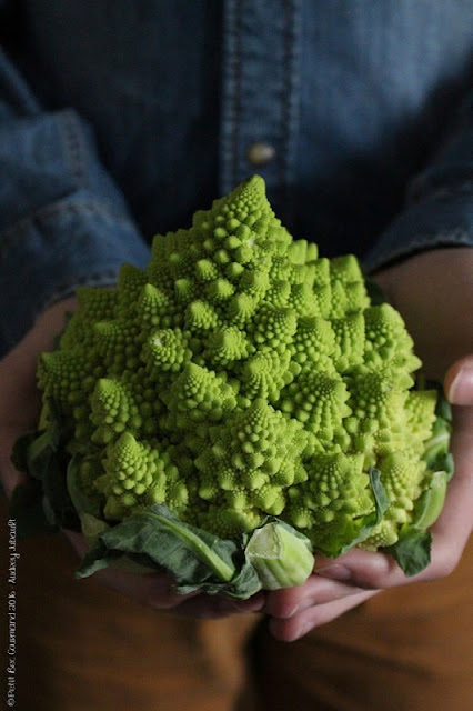 C'est le temps de la bonne soupe du soir qui nous réchauffe bien et quoi de mieux qu'un doux mariage de saveurs avec le chou romanesco, des pommes de terre, du curry, du bacon et bien sûr .... un soupçon de crème.