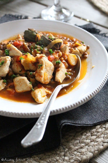 Les lentilles sont connues pour leur apport en fibre, en fer et en sels minéraux, le poulet pauvre en matière grasse et donc peu calorique