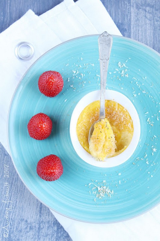 - Saupoudrez les crèmes de mélange sucre roux-noix de coco et enfournez pour 8/10 min de cuisson. A servir tiède .