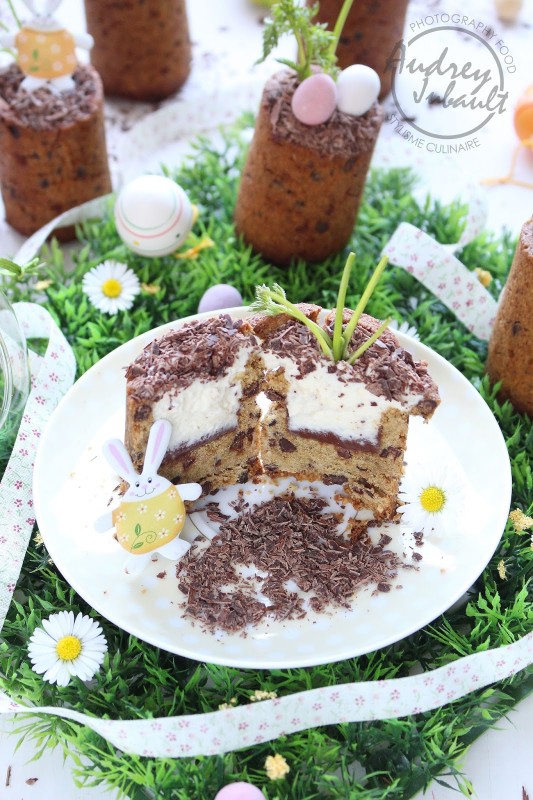 - Parsemez de copeaux de chocolat noir, décorez de petits oeufs et réservez au frais 1h.