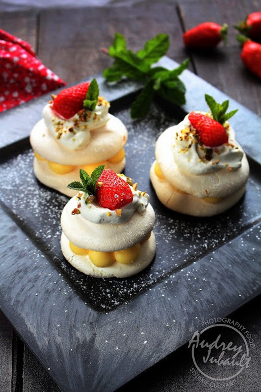 MINI PAVLOVA FRAISE-CITRON Auteur: Audrey Jubault Temps de préparation: Temps de repos: Temps de cuisson: Portions: 8 pers
