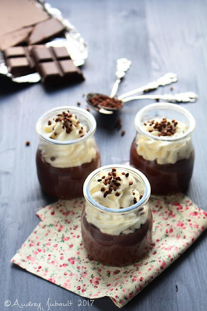 - Remplissez une poche munie d'une douille dentelée et dressez la chantilly sur la mousse chocolat.