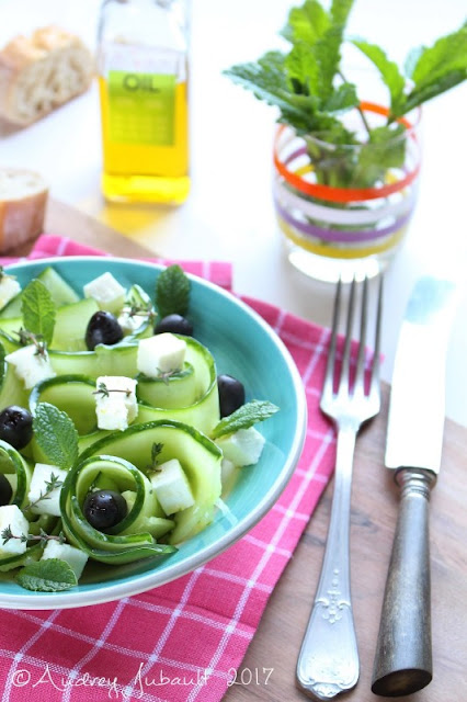 | Salade de concombre à la feta, menthe et huile d'olive |