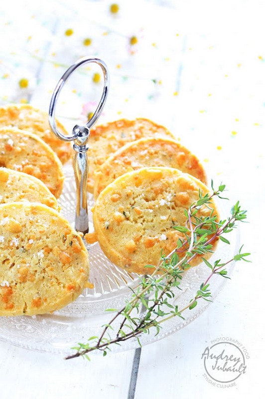 De bons petits sablés au {Parmesan & au Thym frais} à emporter pour le pique-nique sur l'herbe au bord de l'eau.