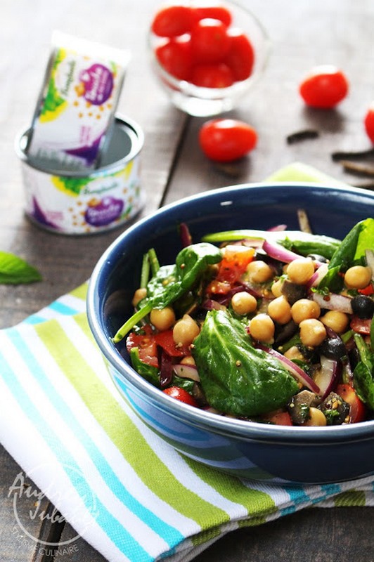 | Salade de pois chiches, tomates, épinards sauce moutarde |
