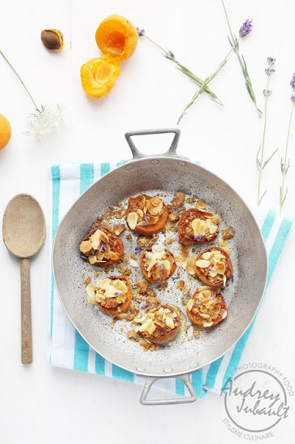 L'été, j'aime les doux abricots rôtis parfumés à la lavande.