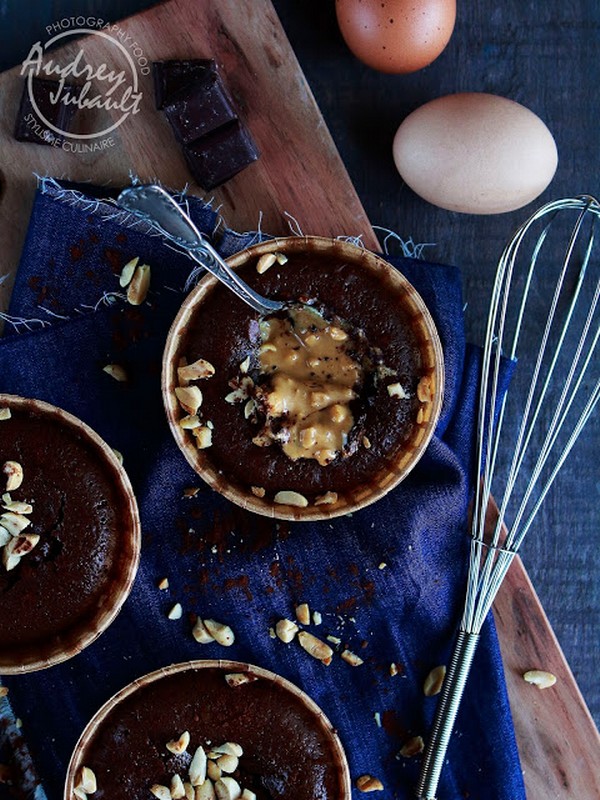 | Fondant au chocolat et coeur au beurre de cacahuètes crunchy |