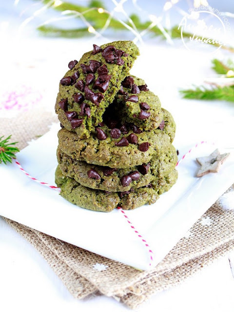 "The Grinch Cookies" , de bons cookies pour les Fêtes de Noël au Thé Matcha, Vanille et pépites de chocolat noir.