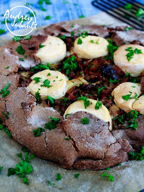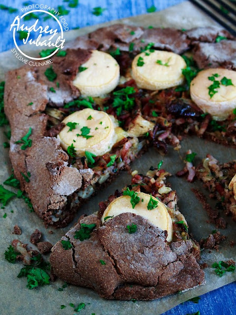 En voilà une belle Tarte rustique aux oignons, lardons cèpes et crottins de Chavignol ! ; et je suis certaine qu'elle va vous plaire. Pour la pâte rustique, j'ai réalisée une pâte sans gluten avec de la farine de châtaigne car je trouve qu'elle se marie très bien avec les saveurs choisies et de la farine de Teff, ces 2 farines sont sans gluten.