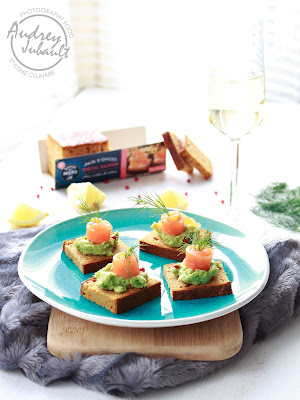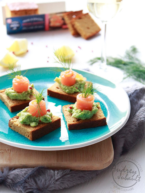 J'ai utilisé le pain d'épices que j'avais reçu dans la Degustabox du mois de Novembre "Pain d'épices Spécial Saumon aux zestes de citron de la marque Repère" (pour le contenu de la box, voir photo en bas d'article).