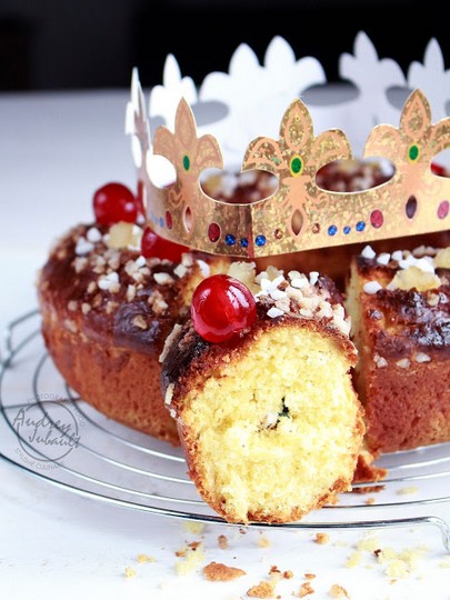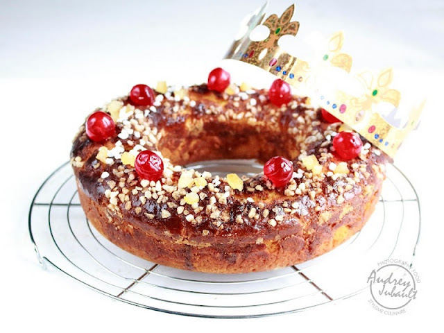 Pour l'Epiphanie, on déguste en Provence une brioche moelleuse parfumée à la fleur d'oranger ou aux agrumes (orange, citron) et garnie de fruits confits et de grains de sucre, mais pour cette recette les fruits confits serviront juste de déco.