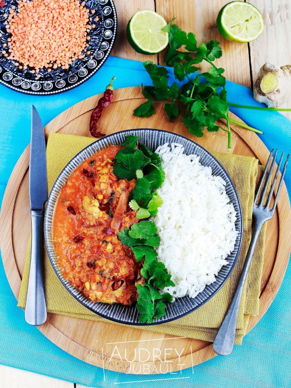 | Curry de lentilles corail et poulet fermier |